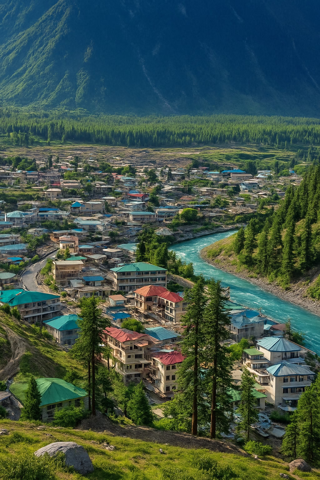 Kalam is a beautiful valley surrounded by lush green mountains and forests. - After checking in, take a walk around the local markets and relax. (Optional)